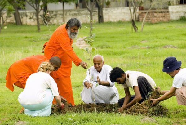 L'Ashram de Jadan a un projet à long terme de reboisement. À ce jour, environ 200 000 arbres ont été plantés dans le but de «virer au vert du désert».